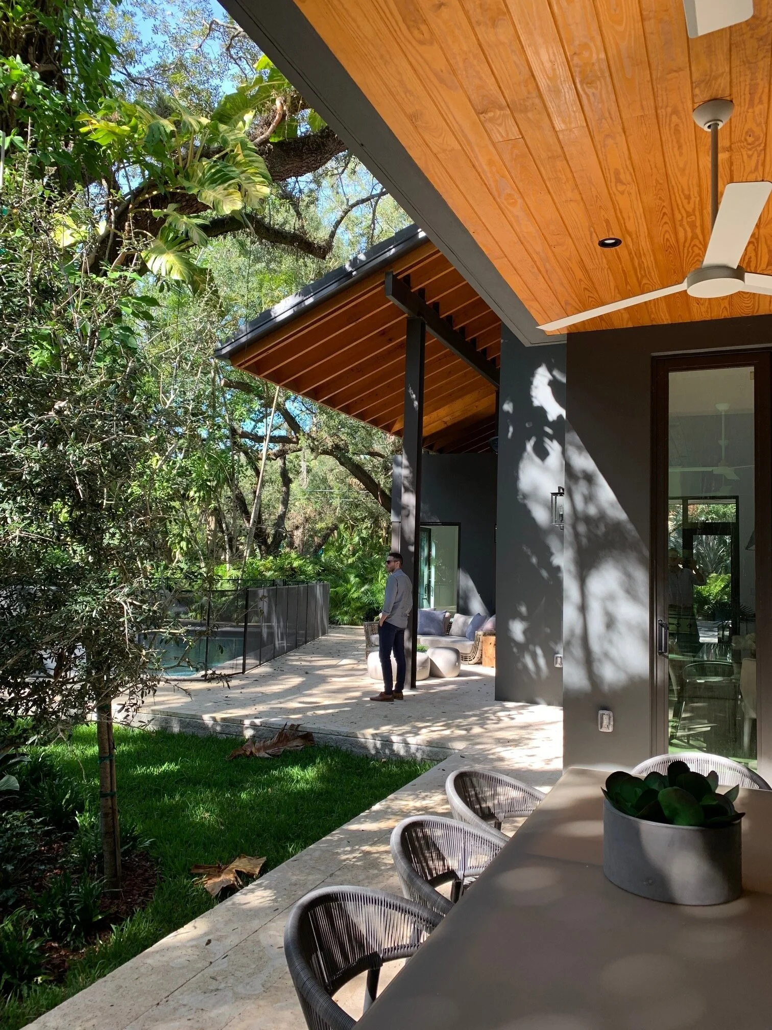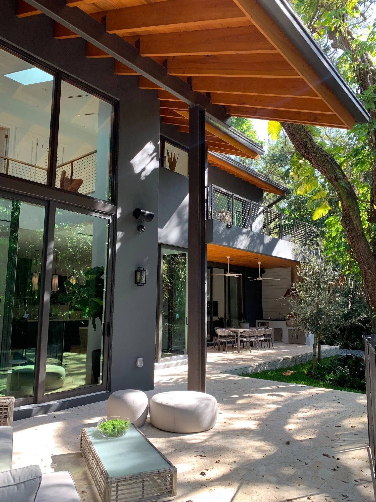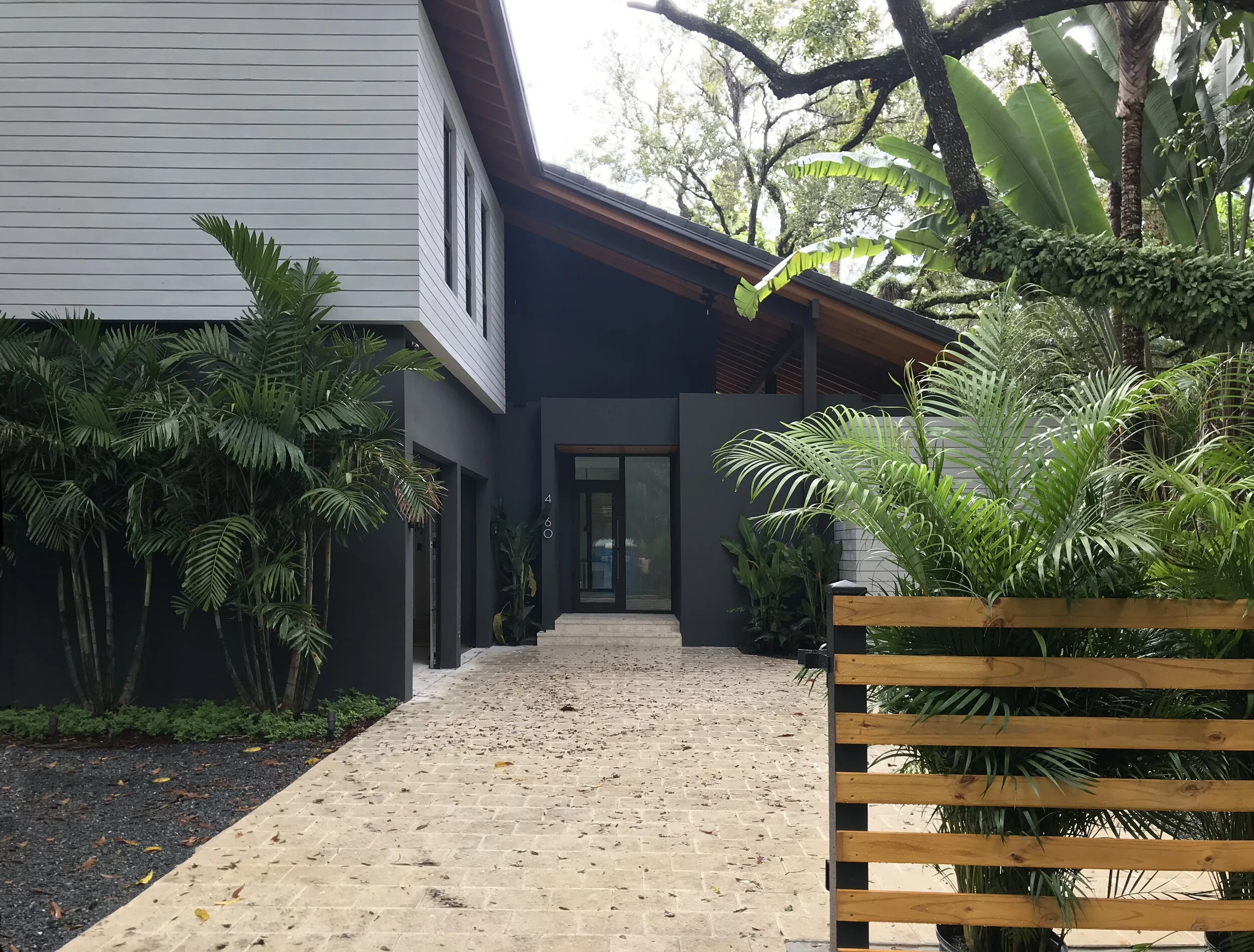 The land chosen for this house is a highly visible corner site located across the street from Kennedy Park in Coconut Grove. The site is also located in a hazardous flood zone, forcing us to place the main level at 10’-0” from grade.