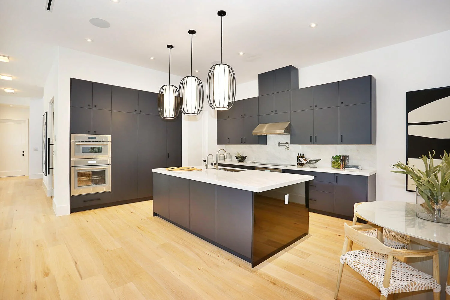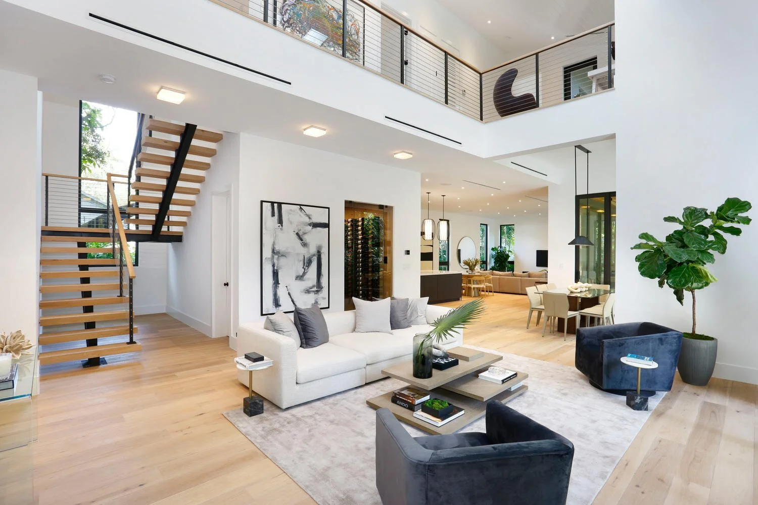 The primary challenge was to reduce the massiveness of 3 story house and nestle it between the mature trees on site. The main living spaces were generated facing the main view to the park and the bay, but connected as well with the leafy trees on the back of the lot. The volumetric intentions are supported by two dynamic volumes with different roof shed roof orientations, validating the inside as the outside of the lot.